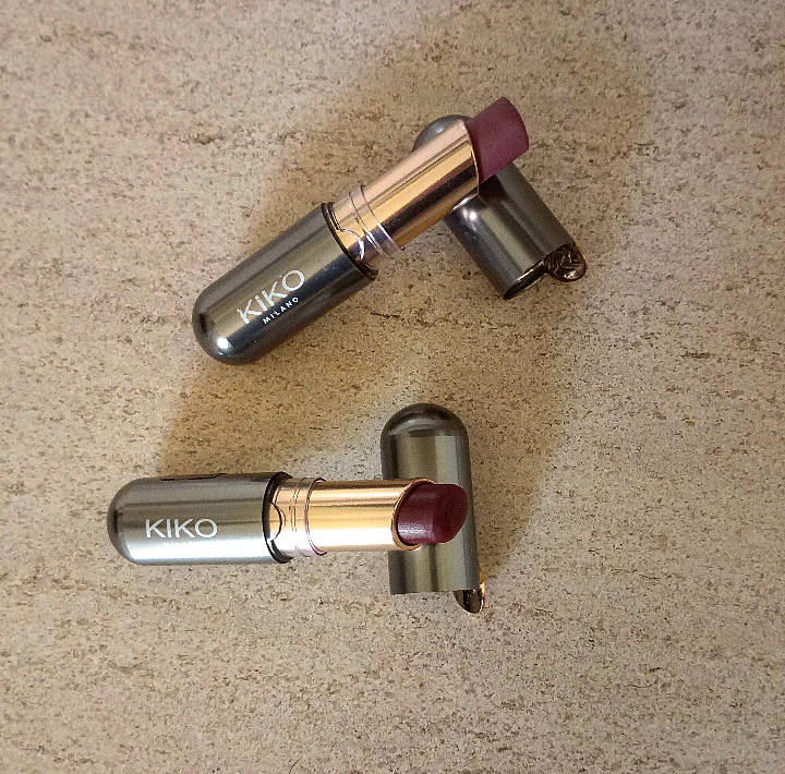 Estes são os batons da linha New Unlimited Stylo da Kiko Milano e vocês têm mesmo de comprar um para experimentar, porque não vão querer largá-los nunca mais. São batons cremosos de longa duração com um acabamento semi mate. Como vê na imagem, tenho-os em 2 cores, mas a minha vontade era ter todas as 20 disponíveis. O batom de cima é na cor 4 (Pearly Rose Mauve) e o de baixo é na cor 19 (Cherry) e ambos foram 8,95 euros.